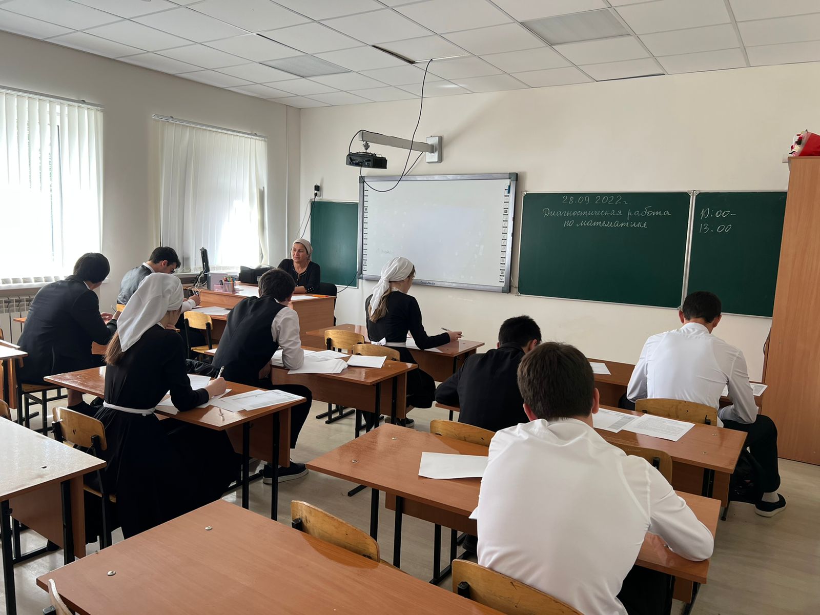28 сентября проходила диагностическая работав форматео ЕГЭ по базовой математике в 11 классе. Время с 10:00 - 13:00 минут. На диагностике присутствовали все 22 обучающиеся 11 класса.